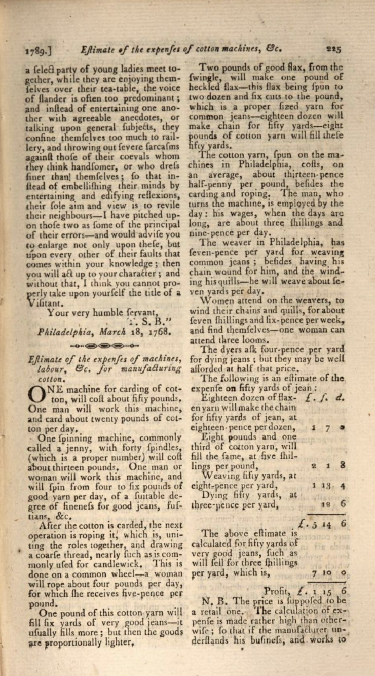 In short, there is no big surprise, fabric created by the jenny would be called... jeans. But here's a reference to the machine similar to that one I just mentioned, referring to "jeans", more than a half-decade before the supposed trip to Genoa.