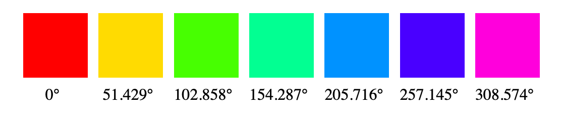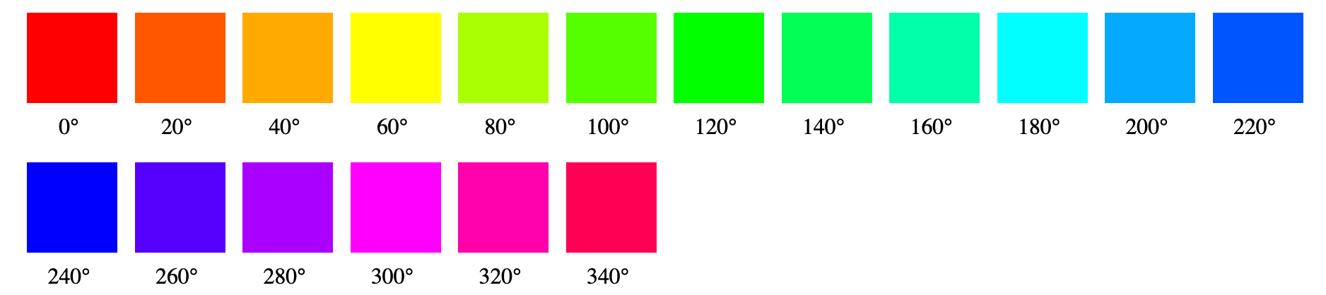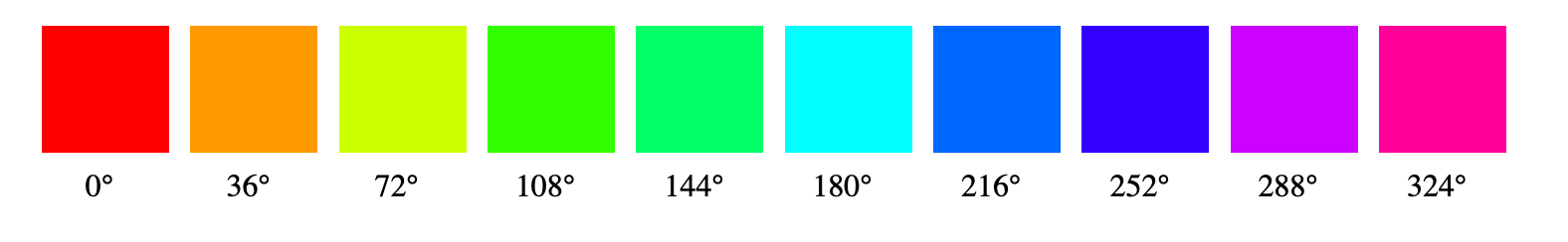 On the flip side, if we divide 360° by 36, we get a beautiful, oversampled, spectrum of color, but there are many examples where the difference between two adjacent colors is nearly indistinguishable.