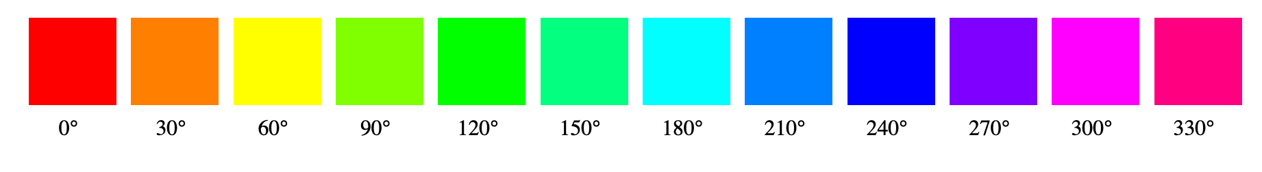 And here is the same theoretical scale based on 12 colors in a 30° color spectrum: